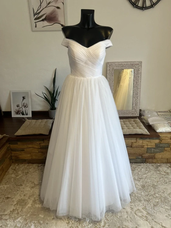 bílé svatební šaty se spadlými ramínkySkladem9 000 Kč/ ks